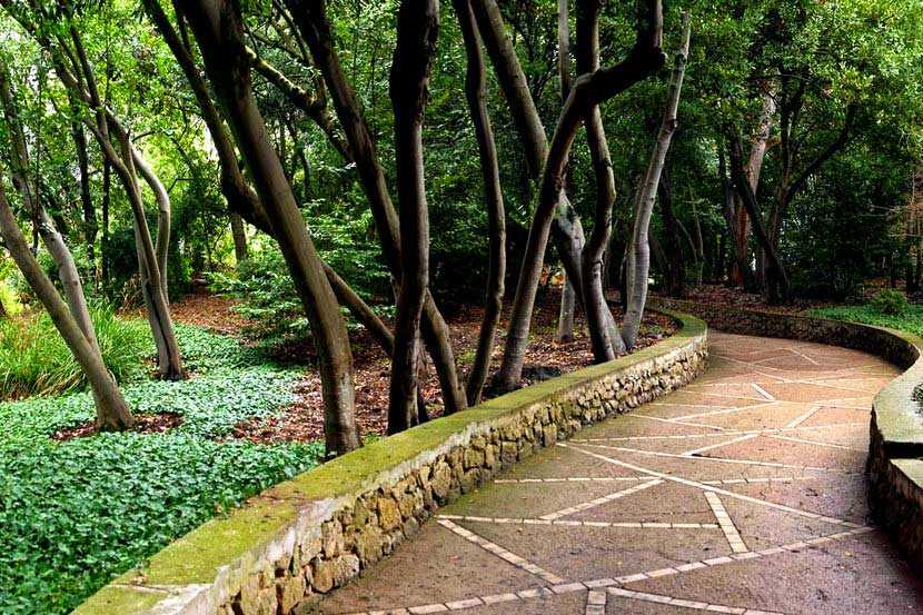 Нижний парк раскинулся на скалистом склоне и занял старинные террасы, перемещение между которыми становится возможным благодаря наличию многочисленных лестниц. Нижний парк – это самая старая часть ботанического сада, ведь именно с этого места когда-то и начиналась высадка ценных пород деревьев.