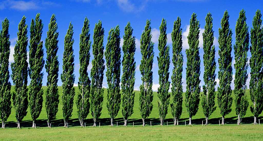 Ряд пирамидальных тополей.