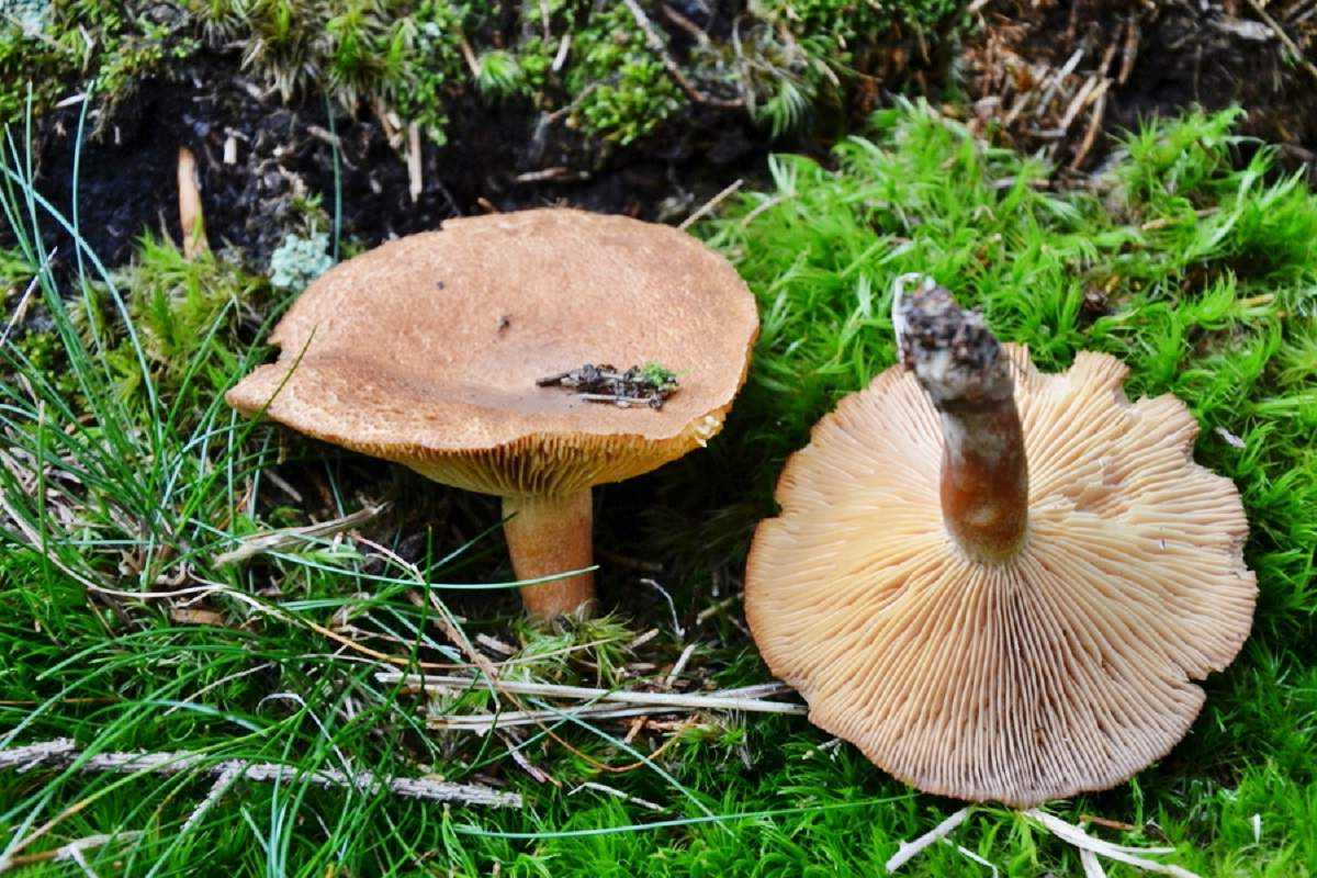 - Млечник буро-желтый с пластинчатым гименофором, представленным розовато-жёлто-коричневыми или кремоватыми пластинами