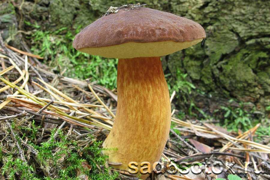 Слывет отличным съедобным грибом, одним из вкуснейших в Европе. Он обладает довольно крупными размерами: коричневатая шляпка достигает в окружности порой 12–15 см, а ножка возвышается на 10–13 см. Мякоть у него мясистая, с приятным вкусом и ярко выраженным грибным запахом, беловатая или слегка с кремово-желтым оттенком. Трубчатый слой золотистого, позже – оливково-желтоватого цвета, споры светло-коричневые. В России растет чаще в хвойных лесах на песчаных почвах, встречается в европейской части, на Северном Кавказе, в Сибири и на острове Кунашир.