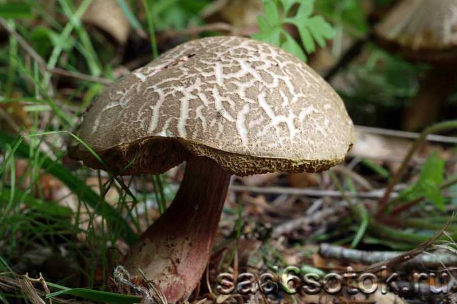 Гриб с характерной сеточкой трещин на небольшой (3–7 см в диаметре) шляпке, которая отличается разными оттенками: бордово-вишневыми, оливково-шоколадными, терракотово-красными, охристо-серыми. У ножки, вырастающей до 10 см, наблюдают необычную булавовидную форму. Внизу ножка красноватая с еле заметными серовато-волокнистыми поясочками. Гименофор крупнопористый, кремово-желтого либо светло-оливкового цвета, споры желто-бурые. Распространен повсеместно: в хвойных и смешанных лесах на рыхлой кисловатой почве по всей Европе и европейской части России, на Дальнем Востоке и Северном Кавказе.