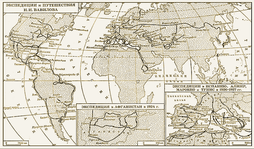 В 1926-1927 Вавилов организовал и провел длительную экспедицию в страны Средиземноморья: Алжир, Тунис, Марокко, Египет, Сирию, Палестину, Трансиорданию, Грецию, острова Крит и Кипр, Италию (включая Сицилию и Сардинию), Испанию и Португалию, Сомали, Эфиопию и Эритрею.