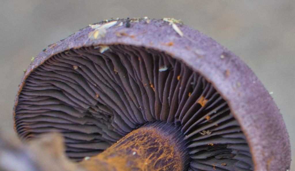 Паутинник фиолетовый растет везде, но найти его везет не каждому. Родовое название «паутинник» и название семейства «паутинниковые» эти грибы получили из-за паутинистых волокон, образующих своеобразное покрывало, которое окутывает растущую шляпку гриба и его ножку, защищая их от повреждений и создавая оптимальные микроусловия для созревающих спор. Это паутинистое покрывало не вечно: оно разрывается и исчезает по мере роста плодового тела. Шляпка гриба в начале роста выпуклая, шаровидная, с вогнутым внутрь краем. Со временем она разрастается до 15 сантиметров в диаметре, становится распростертой. Ножка паутинника фиолетового 12-16 см в высоту, с бульбовидным утолщением в основании, особенно заметным на начальных этапах роста. И ножка гриба, и его шляпка покрыты черно-фиолетовыми чешуйками. Оказывается, что фиолетовый гриб не только снаружи. Если разломить его мякоть, то можно увидеть, что она также окрашена в голубоватые или серо-фиолетовые цвета.