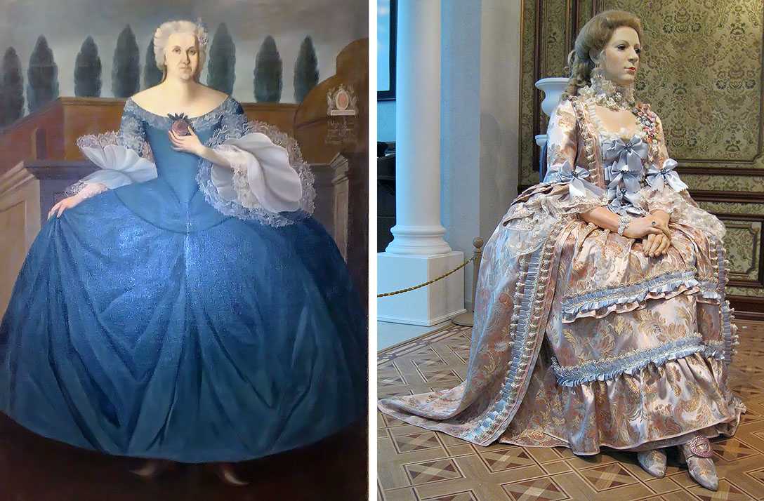 Пусть вас не обманет живописная воздушность тогдашних костюмов. Это ведь не одно платье, а слои из сорочек, юбок, лифа и разнообразных накидок. В среднем такая одёжная «капуста» весила около 25 килограммов. «При этом женщине нужно было улыбаться, кланяться и порхать по дворцу, – говорит Людмила Домненкова». Одна радость, что это представительский костюм. Будничный был попроще и полегче.