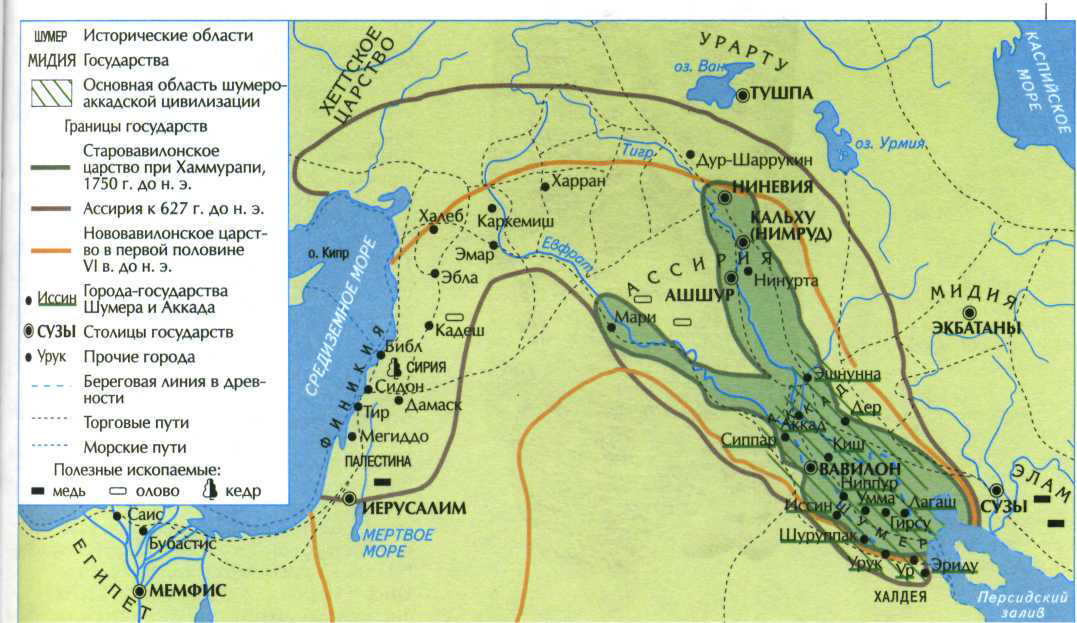 Как и в Древнем Египте в Месопотамии сложились два исторических региона – Южное Междуречье и Северное. Южные земли заселили племена шумеров, северные территории — аккадцы.
