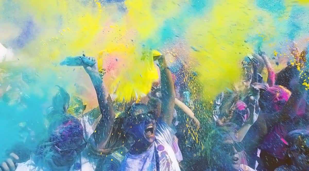 Красочные облачка, взмывают в небеса, парят над головой и рассеиваются частичками по лицам и телам танцующих людей. По окончании фестиваля улицы города переполняют люди, с ног до головы разукрашенные всевозможными цветами, счастливые и весёлые.