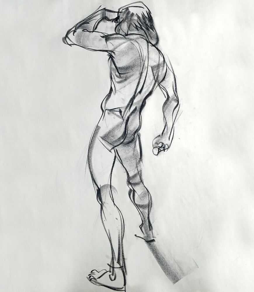 Когда у позы есть очень четкое, выразительное движение, которое автор желает передать, то в таком случае предоставляется возможным начать с жестовой линии, которая описывает основные действия, происходящие в позе. Легкий способ определить это основное действие – это спросить себя: «Что делает фигура?» или «Что происходит в этой позе?»