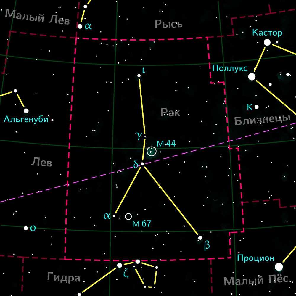 А вот Дельта и Гамма имеют названия Ослов. Ходит одна интересная легенда, что расположил их там бог Дионис (он является богом вина), потому что эти животные были для него священными. Возле них находится туманность под названием Ясли.