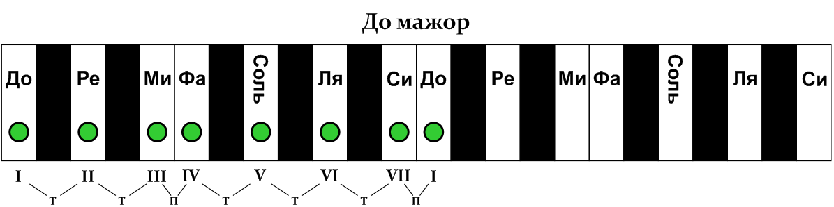 Давайте построим мажорный лад от звука До. Вот что у нас получится: