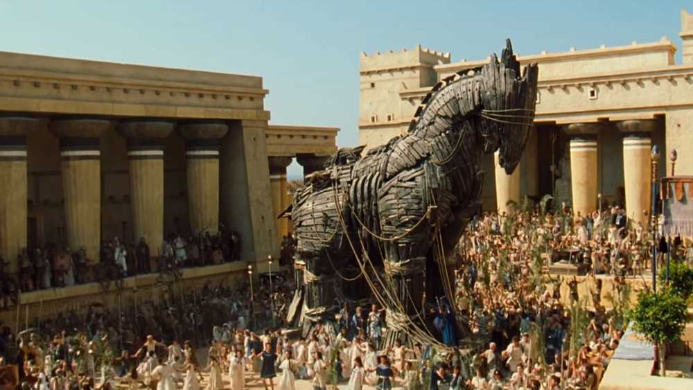 Для этого Элей построил огромного деревянного Троянского коня, внутрь которого спрятались Одиссей и самые храбрые воины Агамемнона. Остальное его войско сделало вид, что покинуло поле битвы и ушло на кораблях.
