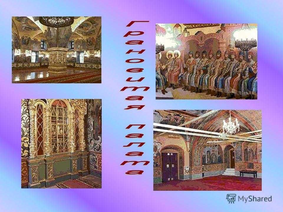 К Большому Кремлевскому дворцу примыкает построенная в конце XV века Грановитая палата. Именно по ее лестнице когда-то спускались цари, а сама палата была залом, где принимались почетные гости, послы, проходили торжественные церемонии и заседания Боярской думы. Внутреннее убранство менялось несколько раз, но и сейчас оно отражает дух старой Москвы.