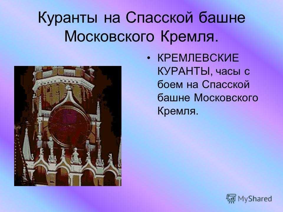 Куранты на Спасской башне Московского Кремля. КРЕМЛЕВСКИЕ КУРАНТЫ, часы с боем на Спасской башне Московского Кремля.