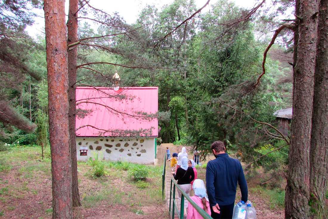 Находится неподалеку от знаменитой обители – в том месте, где ручей Каменец впадает в реку Пачковка. Вода в источнике необычайно чистая и вкусная.