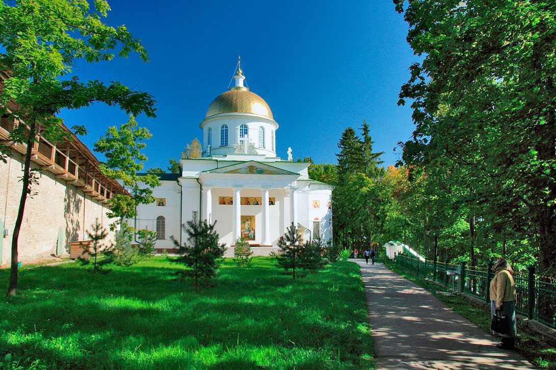Есть что посмотреть в Печорах и поклонникам русского классицизма в храмовой архитектуре. Этот монументальный собор высотой 32 метра является самым масштабным сооружением в ансамбле Псково-Печерского монастыря. Его золоченый купол с крестом виден издалека.