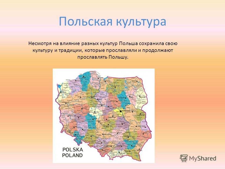 Польская культура Несмотря на влияние разных культур Польша сохранила свою культуру и традиции, которые прославляли и продолжают прославлять Польшу.