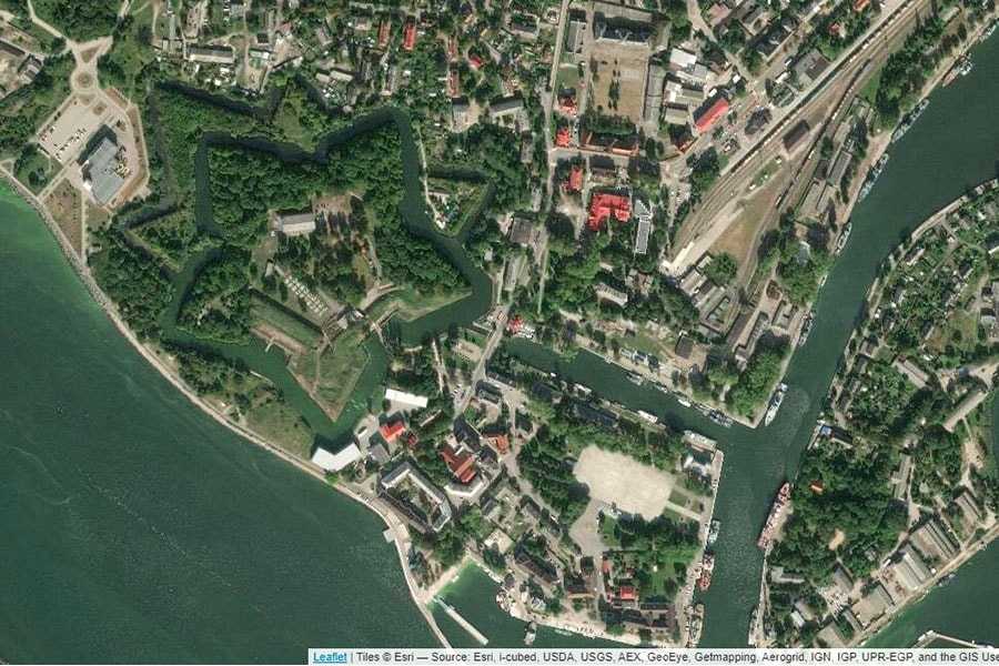 Панорама Пиллау на карте, где видна форма крепости в виде пятиконечной звезды