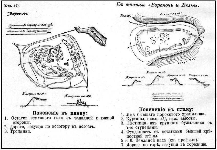 Планы старинных утраченных крепостей Воронич и Велье
