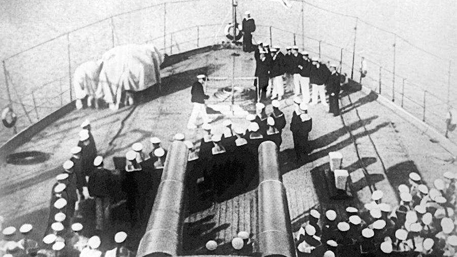 Для того чтобы сделать картину, нужен был прежде всего броненосец. Его роль «сыграл» корабль «Двенадцать апостолов». Броненосец следовало повернуть кормой в сторону моря. Но дело в том, что судно являлось главным пакгаузом, на котором хранилось несколько тонн мин. Выгрузка опасного груза заняла бы не один месяц. На съемки отводилось определенное количество недель