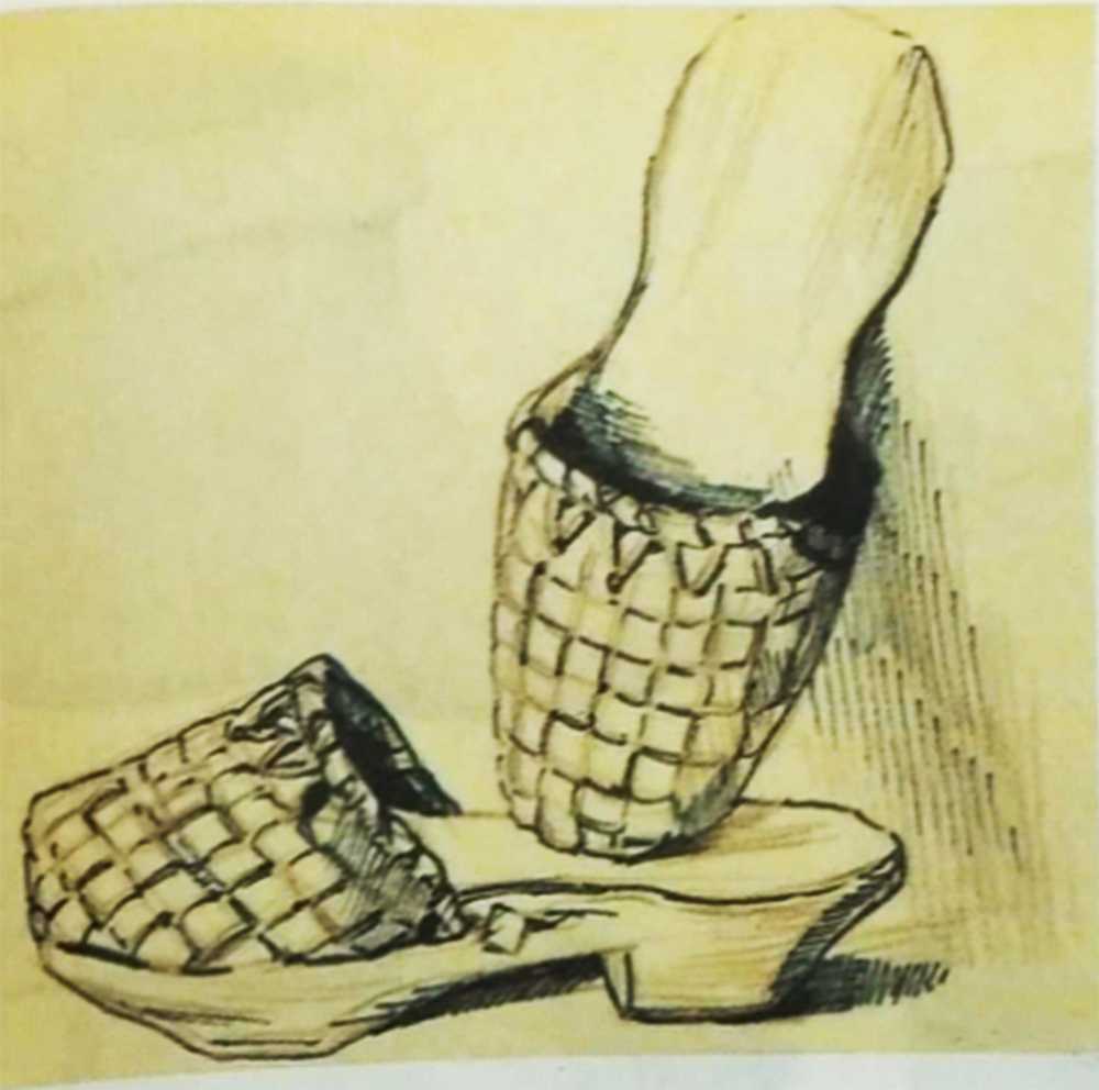 лапти «чабата» — носились поверх суконных или холщовых чулок и закреплялись оборами.