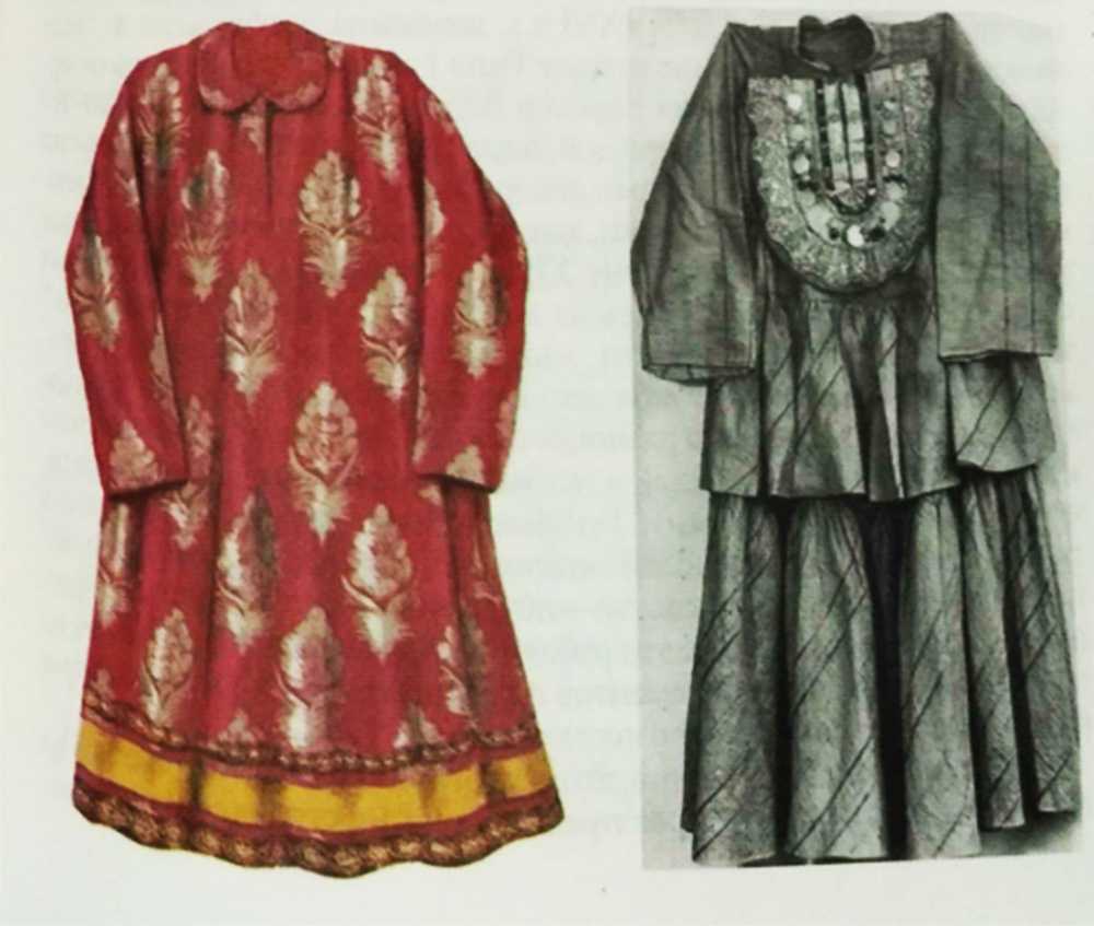 - «тун» — расклешенная шуба из овчины или лисьего меха ниже колен с длинными рукавами и застежкой на кожаных пуговицах или крючках.