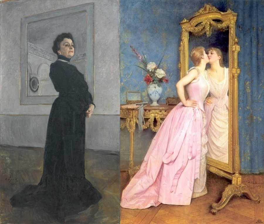 Слева: Валентин Серов. Портрет актрисы Ермоловой. 1905. Третьяковская галерея, Москва. Справа: Огюст Толмуш. Тщеславие. 1890. Частная коллекция. Vinograd.su.