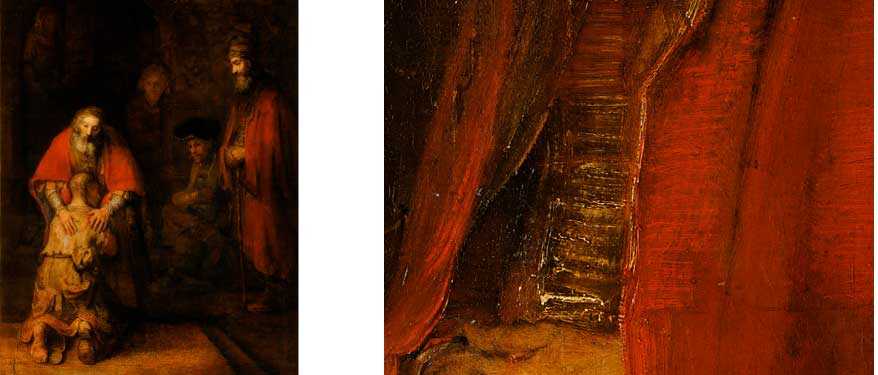 Каждый предмет Рембрандт пишет с множеством оттенков цвета, а не только градаций тона.