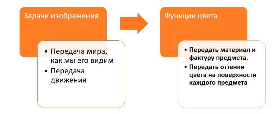 Обратите внимание, что в описании этого этапа нет ставшей нам привычной таблицы с задачами изображения и функциями цвета. Так как из выразительного средства цвет превращается в объект изображения