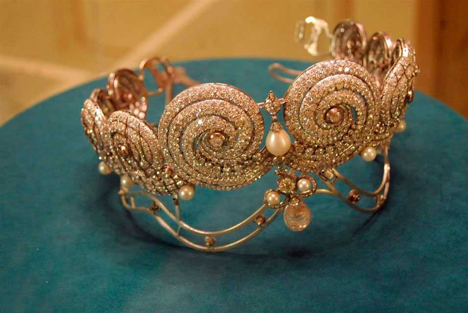 Особо выделяются королевские регалии – короны и диадемы, наиболее «плотно» усыпанные бриллиантами. Так, платиновая диадема, украшавшая голову правнучки основателя династии на свадьбе, «декорирована» 2000 отборных бриллиантов.
