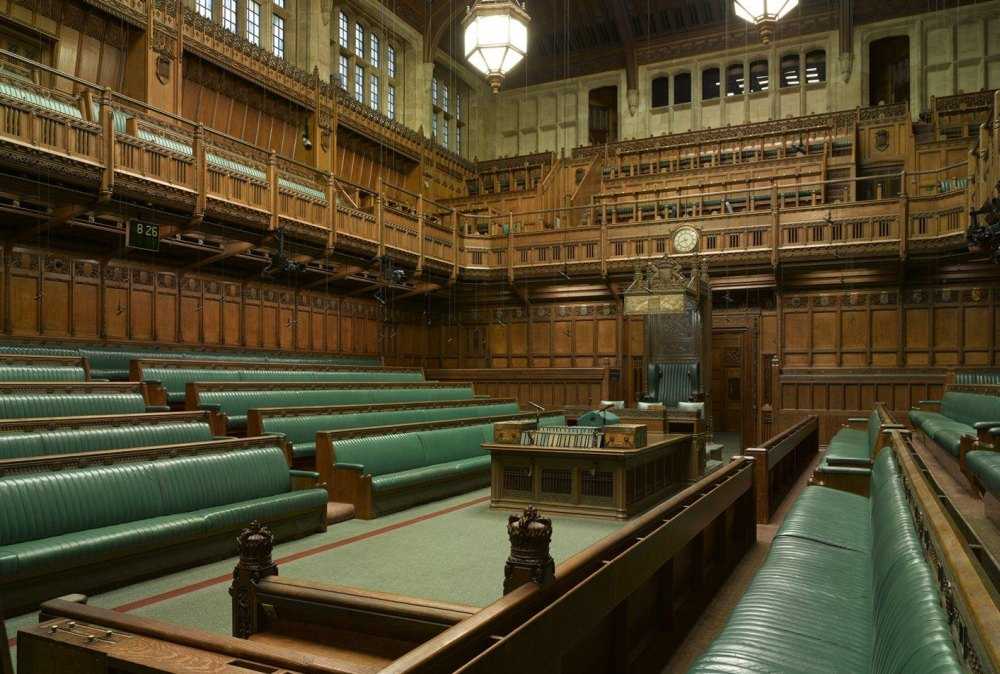 Зал заседаний Палаты общин площадью 290 квадратных метров заново построен после Второй мировой войны. Деревянная отделка дополнена мебелью спокойного зеленого цвета.