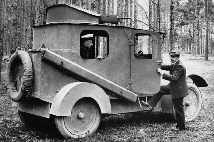 Город Лодзь знаменит тем, что на его улицах русская армия впервые применила бронетранспортеры. Такие автомобили были оснащены четырехлитровым бензиновым двигателем, мощностью 37 л./с., максимальная скорость машины составляла 50 км./ч. Опытные образцы были созданы в России в 1906 году конструктором Накашидзе Н.А., в 1914 году в Санкт-Петербурге (Петрограде) уже была создана первая автомобильная рота. Вооружение бронеавтомобилей состояло из пулеметов и легких пушек.