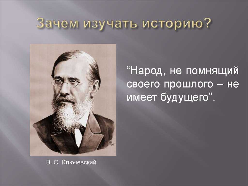 «Народ, не знающий своего прошлого, не имеет будущего», – сказал однажды В.О. Ключевский. Он был прав. Из событий прошлого мы должны извлечь урок, чтобы больше никогда не повторять таких ошибок. Народ, который не знает о том, что происходило с его предками, будет наступать на эти грабли снова и снова до тех пор, пока не запомнит, что так делать нельзя, или пока окончательно не пропадет с лица Земли. Но ведь гораздо лучше сразу осознать свою ошибку и дальше двигаться к лучшему, а это невозможно сделать без знаний истории. Государство, где люди понимают историю и могут делать выводы из событий, всегда будет впереди, потому что оно, видя ошибки других, сможет не допускать таких же происшествий у себя.