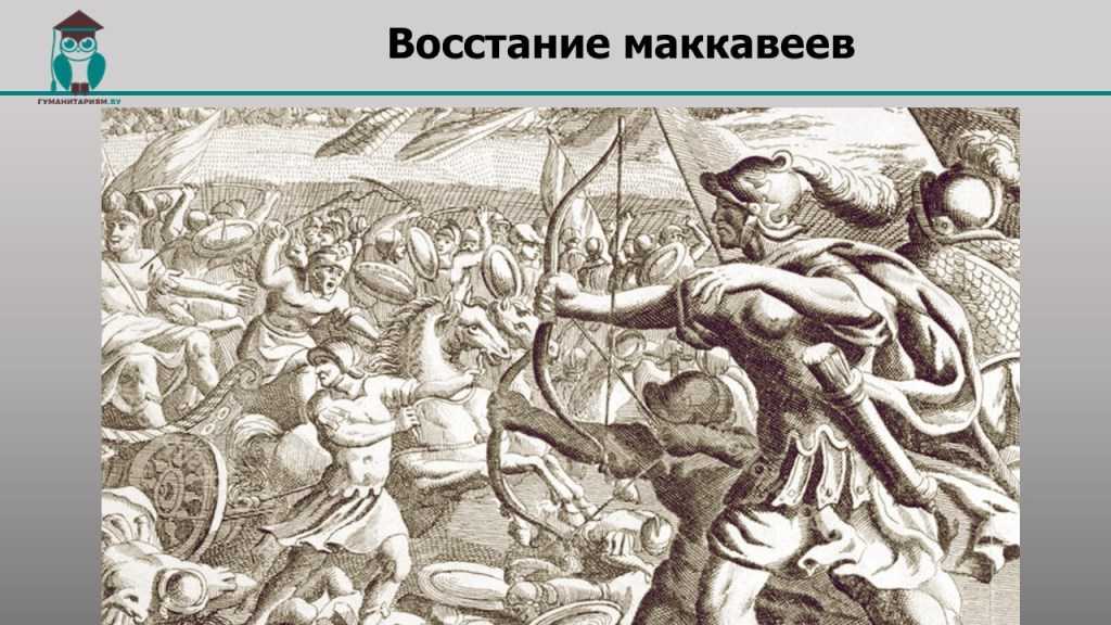 После смерти Александра его царство было поделено между его соратниками. Палестина досталась Птолемею. Но позже перешла под власть сирийских царей Селевкидов. В Палестине вместо древнееврейского распространился греческий и арамейский языки. Проводилась попытка вытеснения еврейских обычаев и внедрения культа греческих богов.