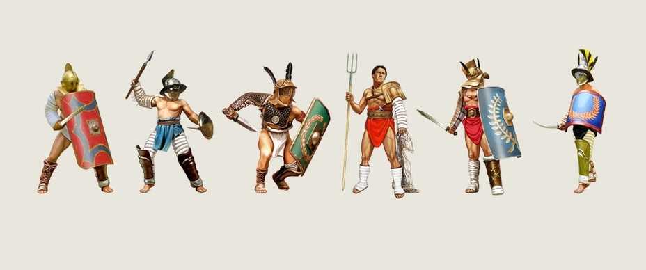 Были характерной чертой древнеримского образа жизни. Их основными участниками выступали профессиональные бойцы, обученные сражаться друг с другом различными видами оружия. Снаряжение гладиаторов отличалось разнообразием и первоначально соответствовало особенностям вооружения различных противников римлян.