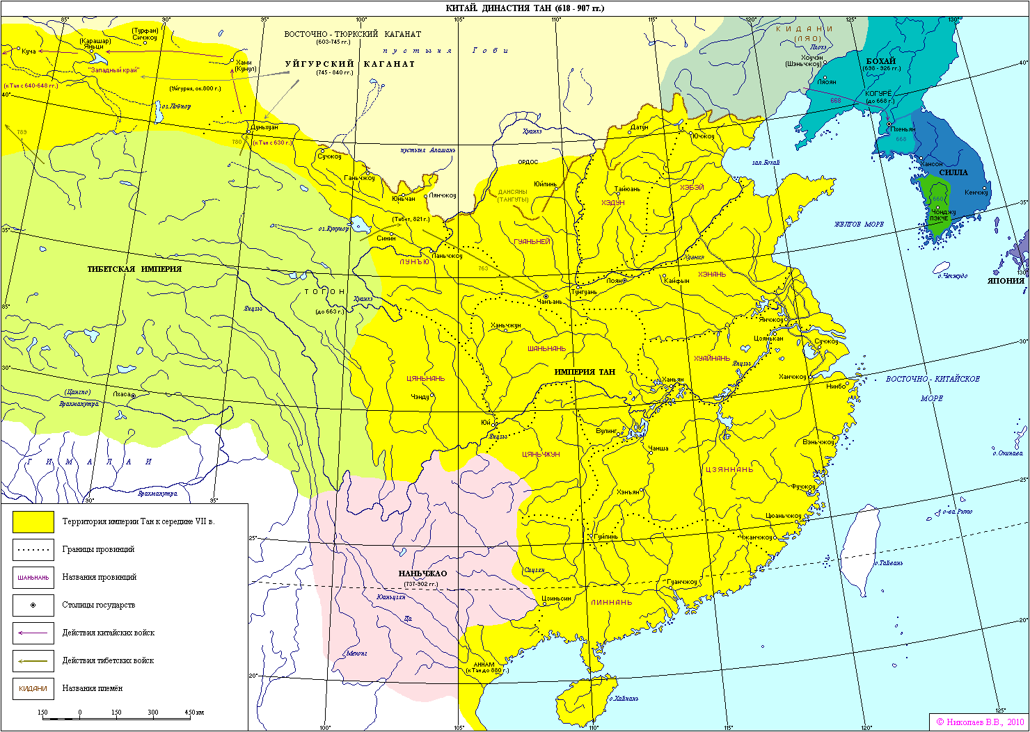При нем китайские войска в 675-676 г. завоевали Корею, но уже через год были изгнаны.