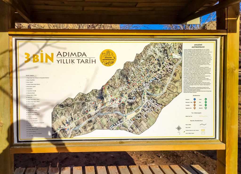 Окрестности Аязини использовались для поселений с фригийского периода. Местные жители вырубали свои дома прямо в скалах из мягкого вулканического туфа. В комнатах есть скамейки для сидения, ниши разных размеров для размещения мебели и осветительных приборов.
