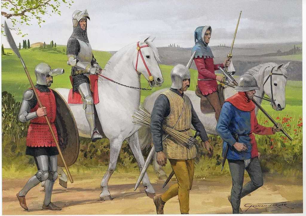 Этот миф заложен еще во времена Столетней войны, после разгромных поражений французских войск при Креси, Пуатье и Азенкуре, и вроде бы основывается на словах французского хрониста Жана Фруассара. Звучит он примерно так: кичливые бронированные рыцари проиграли пешим лучникам-йоменам, которые успевали сделать из них ежиков, и убивали под ними лошадей.