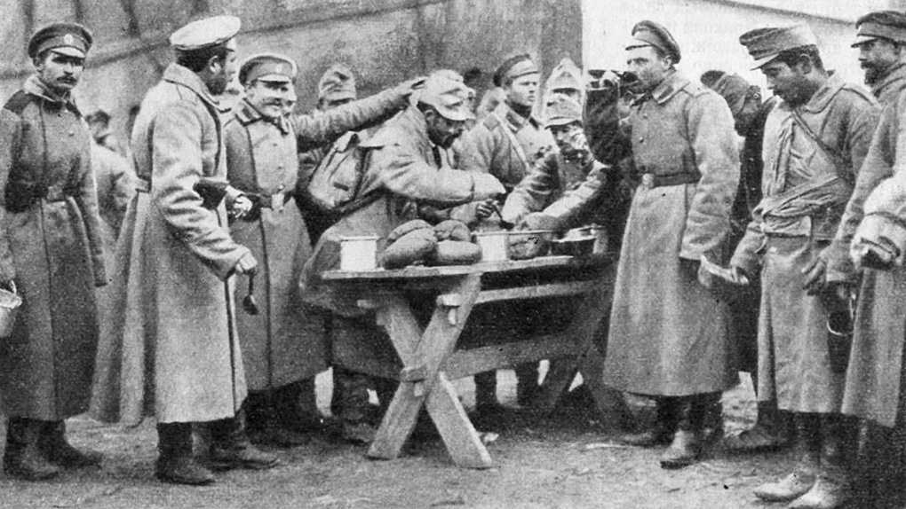 Русские солдаты делятся едой с пленными австрийцами.