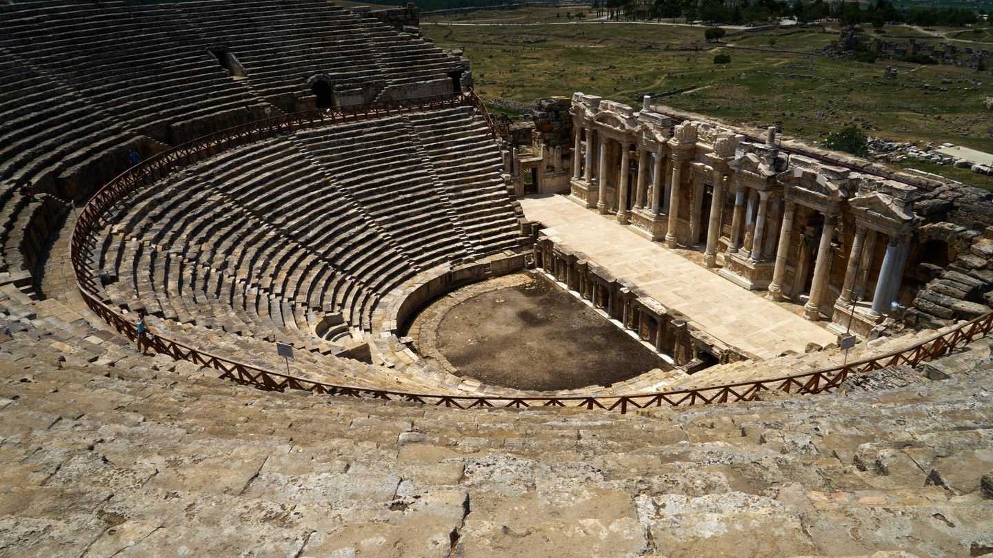 В Древней Греции театр располагался на открытом пространстве. Он представлял собой круглую площадку (орхестру) и места зрителей, расположенные полукругом на склоне холма.