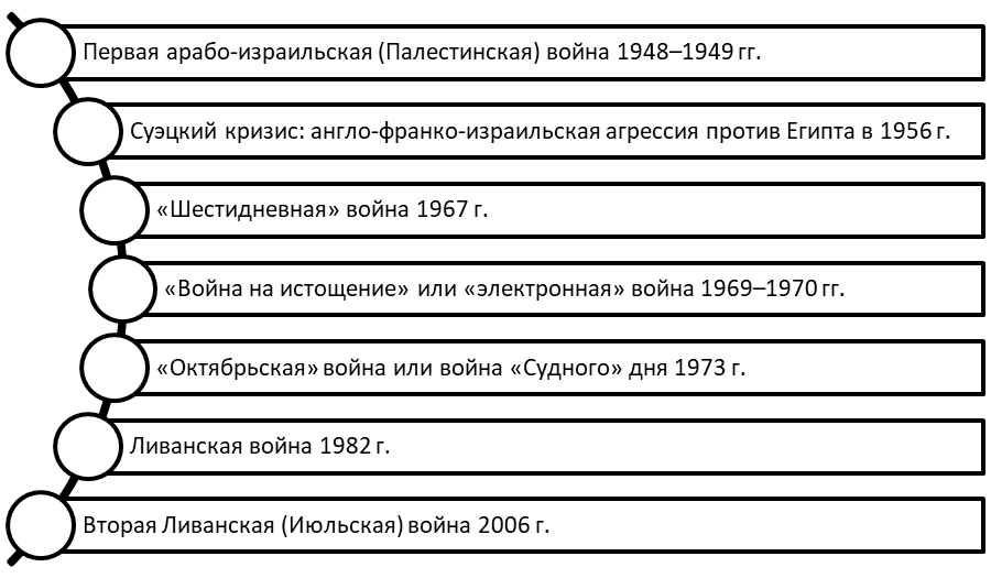 Наиболее известные военные события арабо-израильского конфликта представлены на рисунке 1.