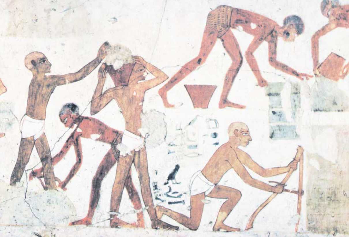 Процесс изготовления кирпича. Изображение из гробницы Рехмира. Около 1500-1450 гг. до н. э. Фивы, Египет