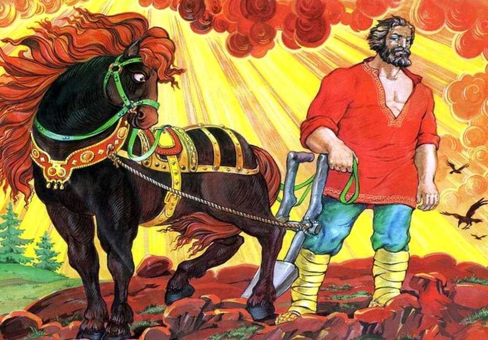 Перед князем стоял высокий крепкий мужчина, который создавал борозду на целине. Он с лёгкостью выкорчёвывал деревья, создавая участок для поля. Под плугом Микулы Селяниновича не мог устоять даже могучий дуб, который с корнями вылетал из земли. Вольга Всеславьевич был ошеломлён – такой силы ему видеть не доводилось.