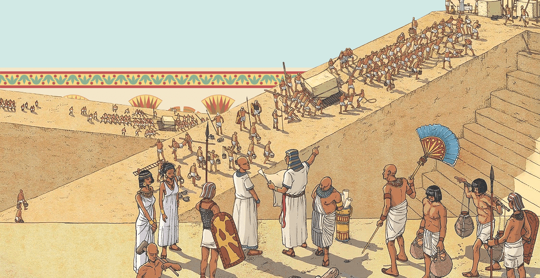 Фараон был владыкой Египта. Ему подчинялись вельможи — царские советники и военачальники. На службе у фараона и вельмож состояли многочисленные писцы — так называемый чиновничий и бюрократический аппарат государства. Власть фараона поддерживало сильное войско. Подавляющее большинство египетского народа трудилось на полях, на масштабных строительствах, в мастерских.