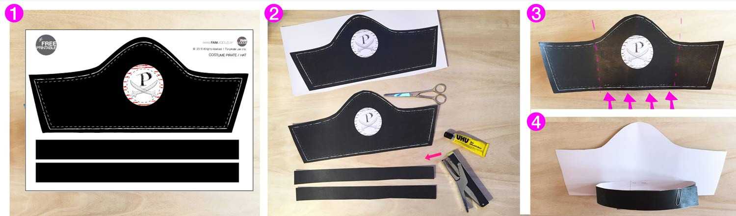 Детальнее с созданием пиратской шляпы из бумаги можно ознакомиться на фото.