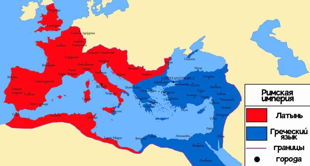 Существует мнение, что языковые отличия между восточной и западной частями Римской империи привели к их обособлению после 395 года, который считается началом падения государства.