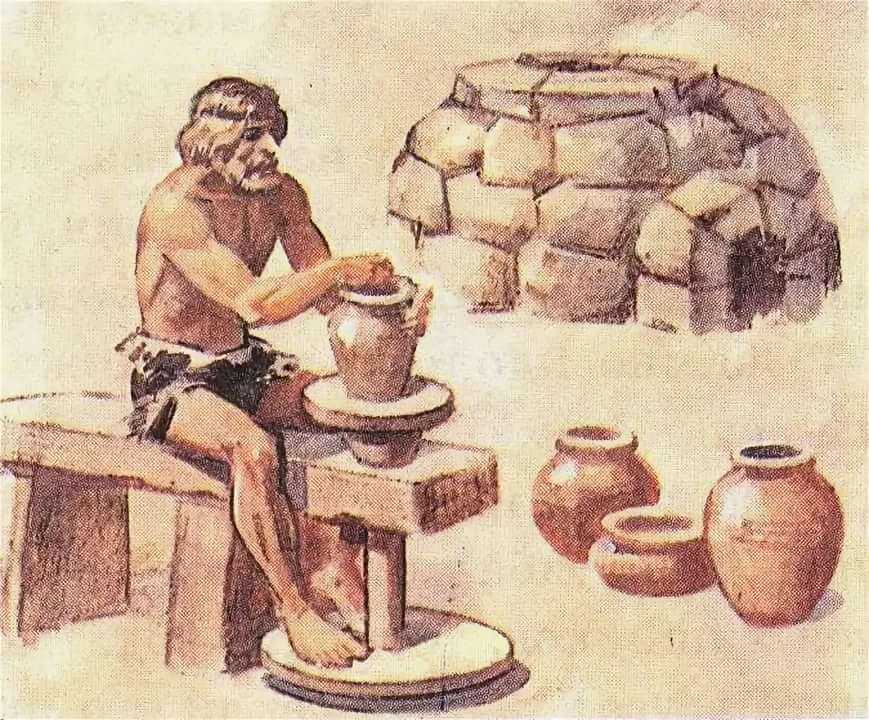 Постепенно люди, занимавшиеся исключительно производством глиняной посуды, тканей или орудий труда, стали выделяться из кругов скотоводов и земледельцев. Их стали называть ремесленниками.