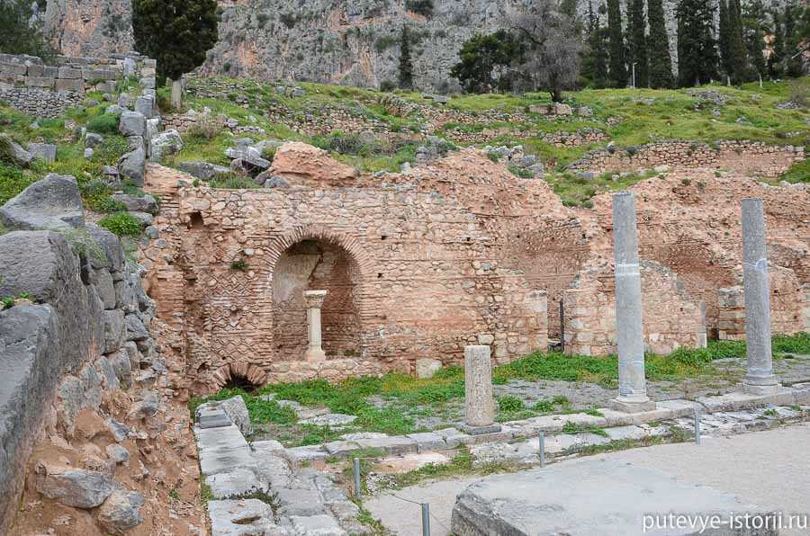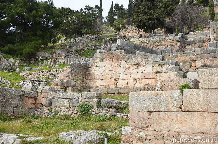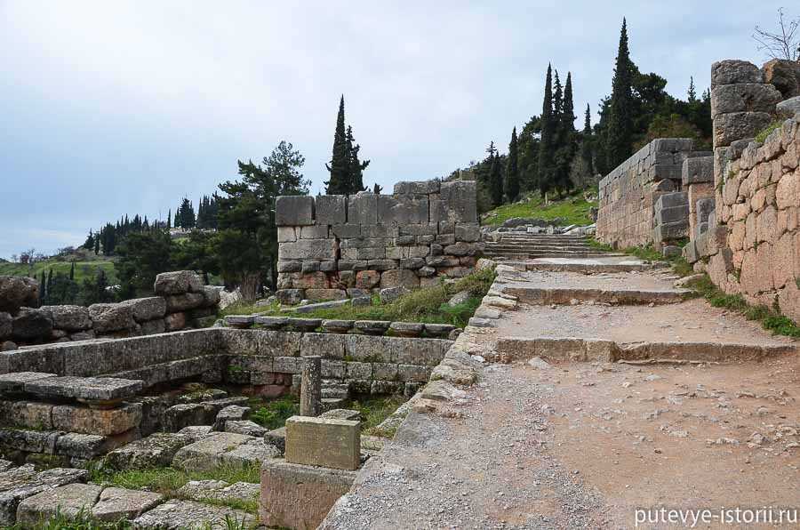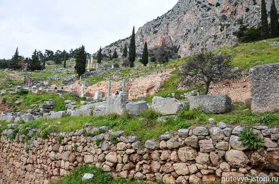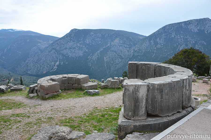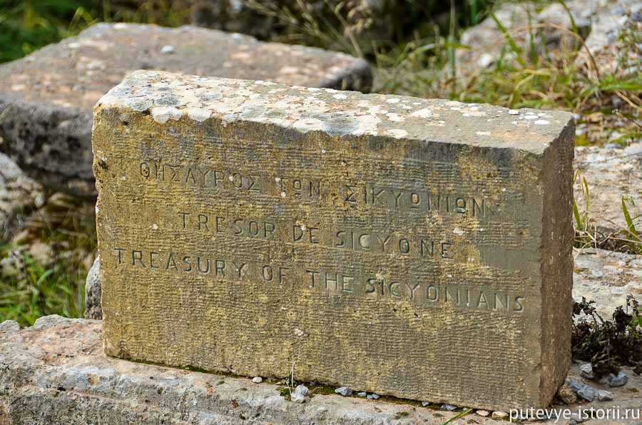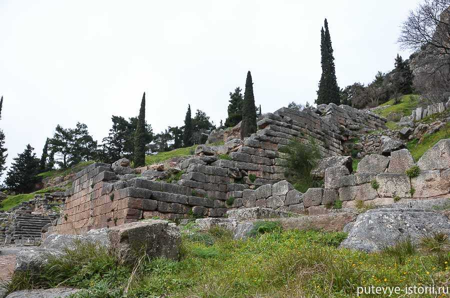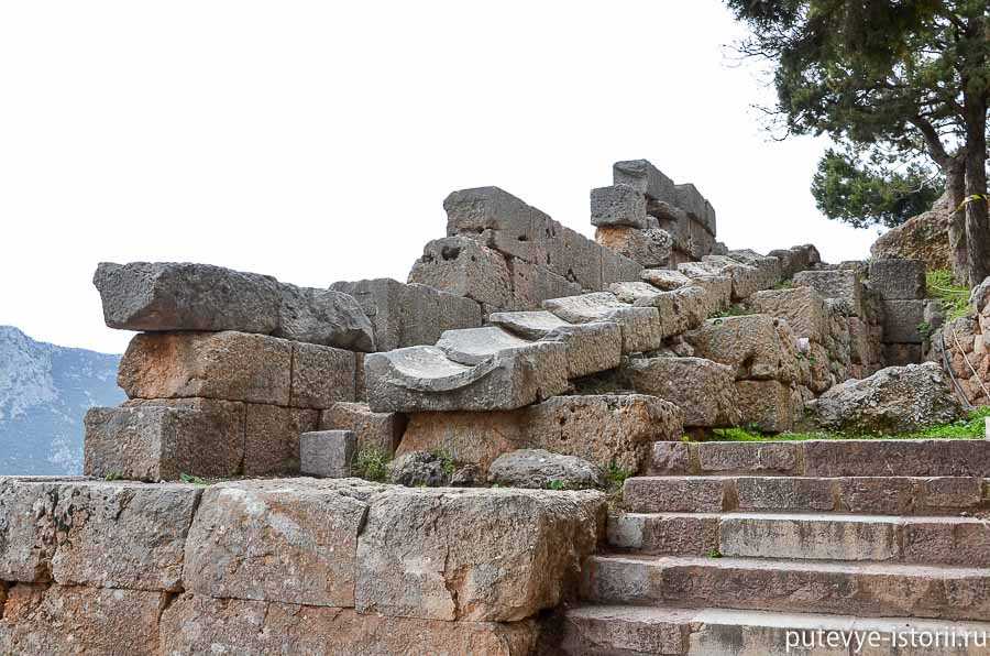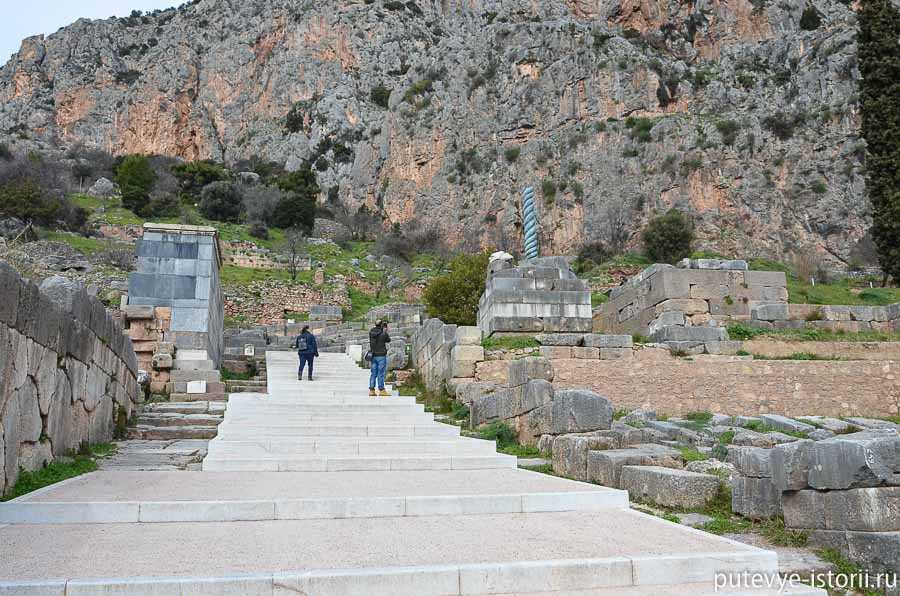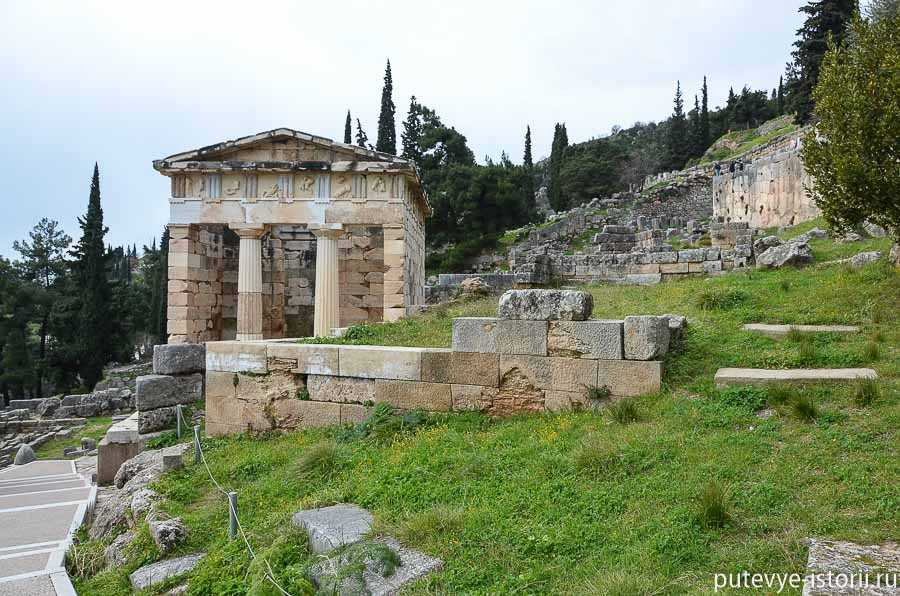 Самая впечатляющая из сокровищниц — Афинская (возведена в конце 6- начале 5-го века до н.э. в виде дорического храма). Она отлично сохранилась.