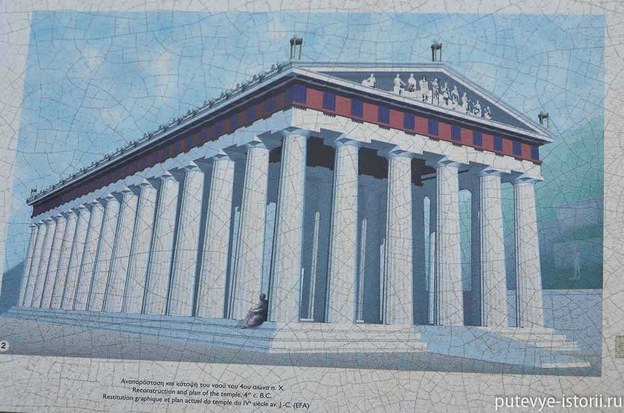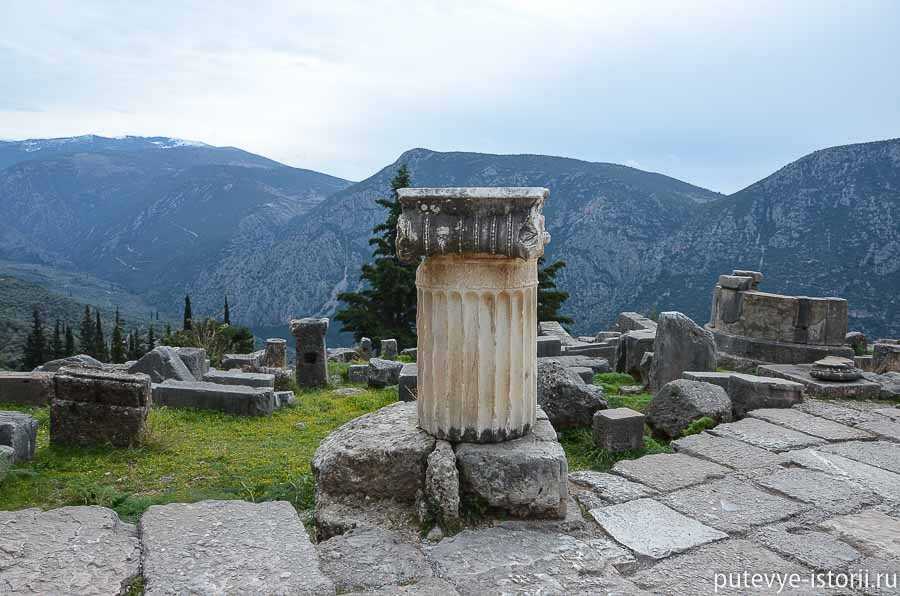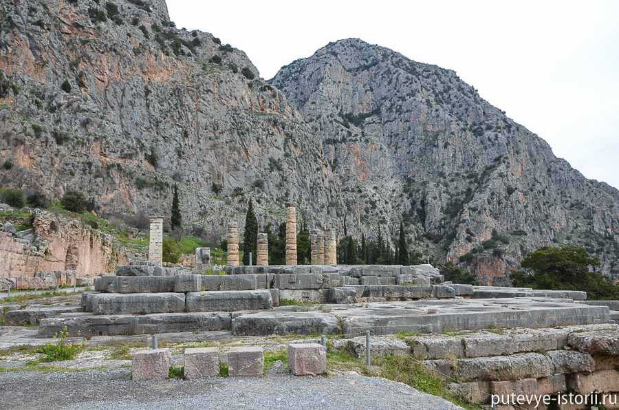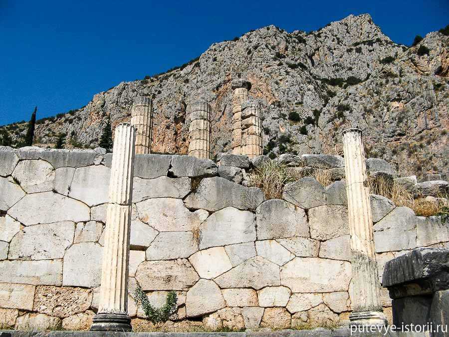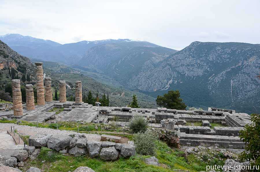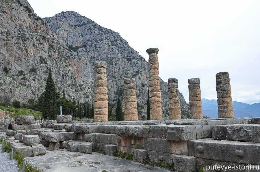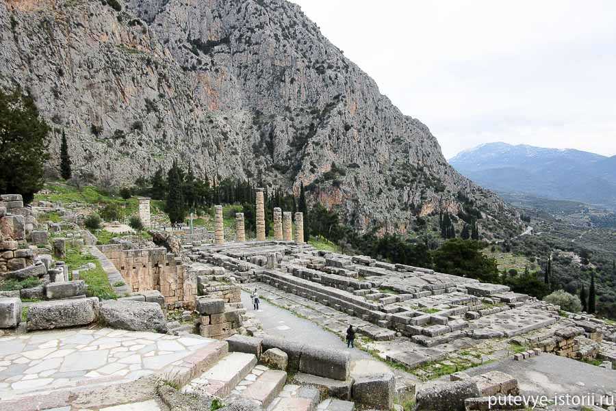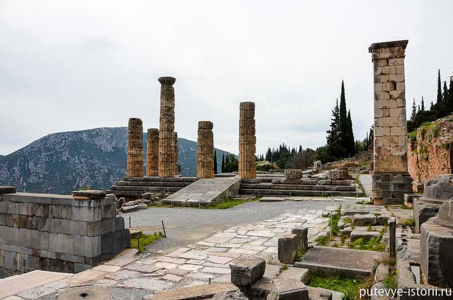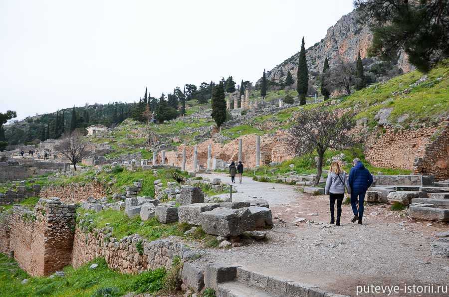 Самая впечатляющая из сокровищниц — Афинская (возведена в конце 6- начале 5-го века до н.э. в виде дорического храма). Она отлично сохранилась.