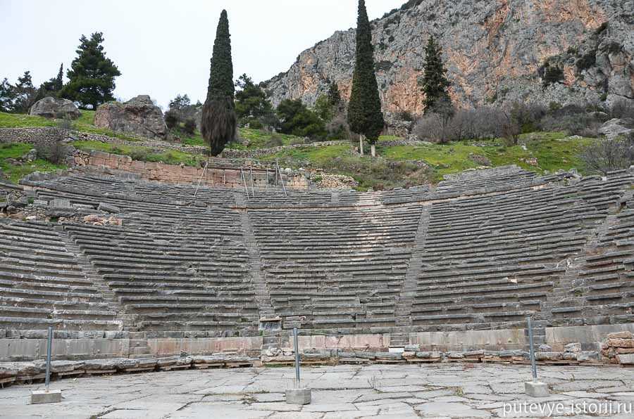 На самой верхней террасе, западней театра лежит стадион. Я был в Дельфах два раза и оба раза не смог попасть на стадион – дорога была закрыта из-за опасности камнепадов.