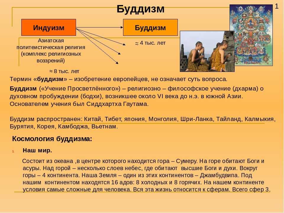 - Буддийская космология. Этим термином называют учение о развитии вселенной, мироздании и перерождении.