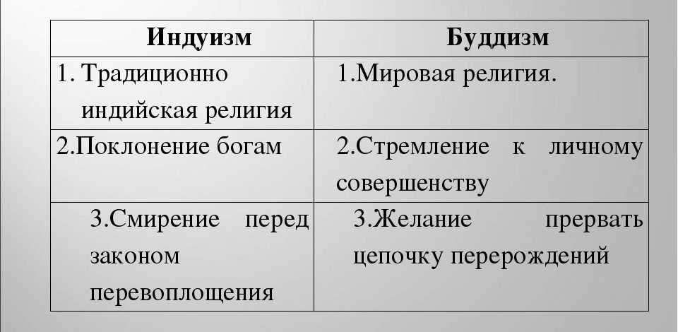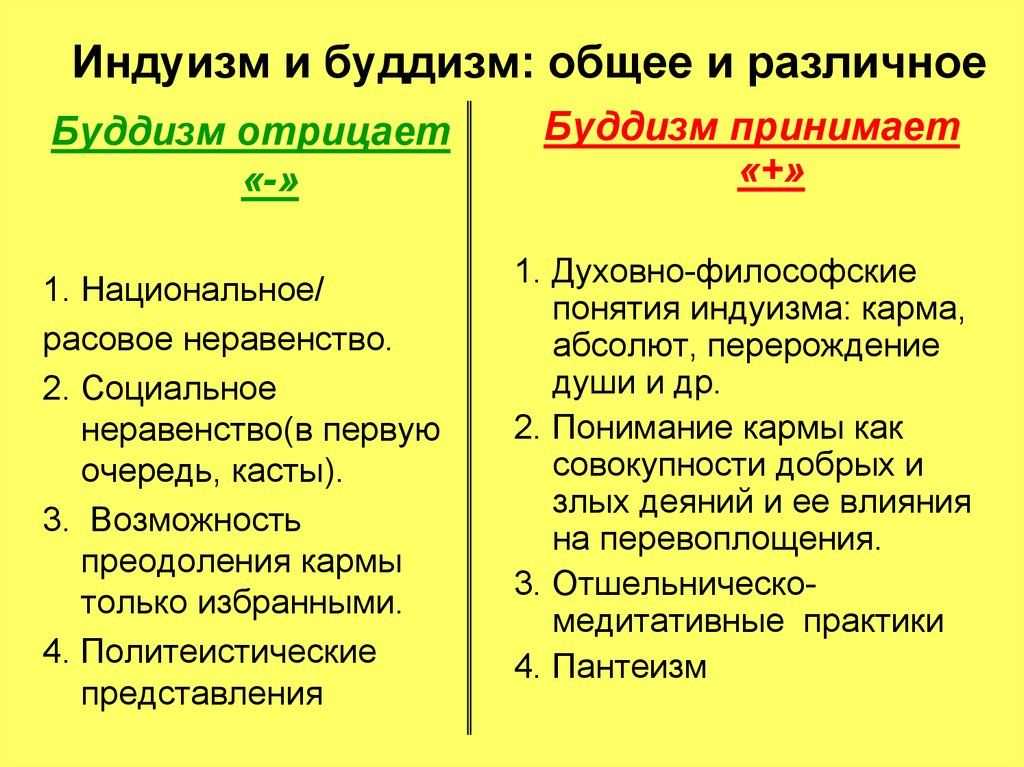 Несмотря на ряд схожих черт, индуизм и буддизм считаются совершенно разными религиозными течениями. Для них характерен ряд важных отличий.